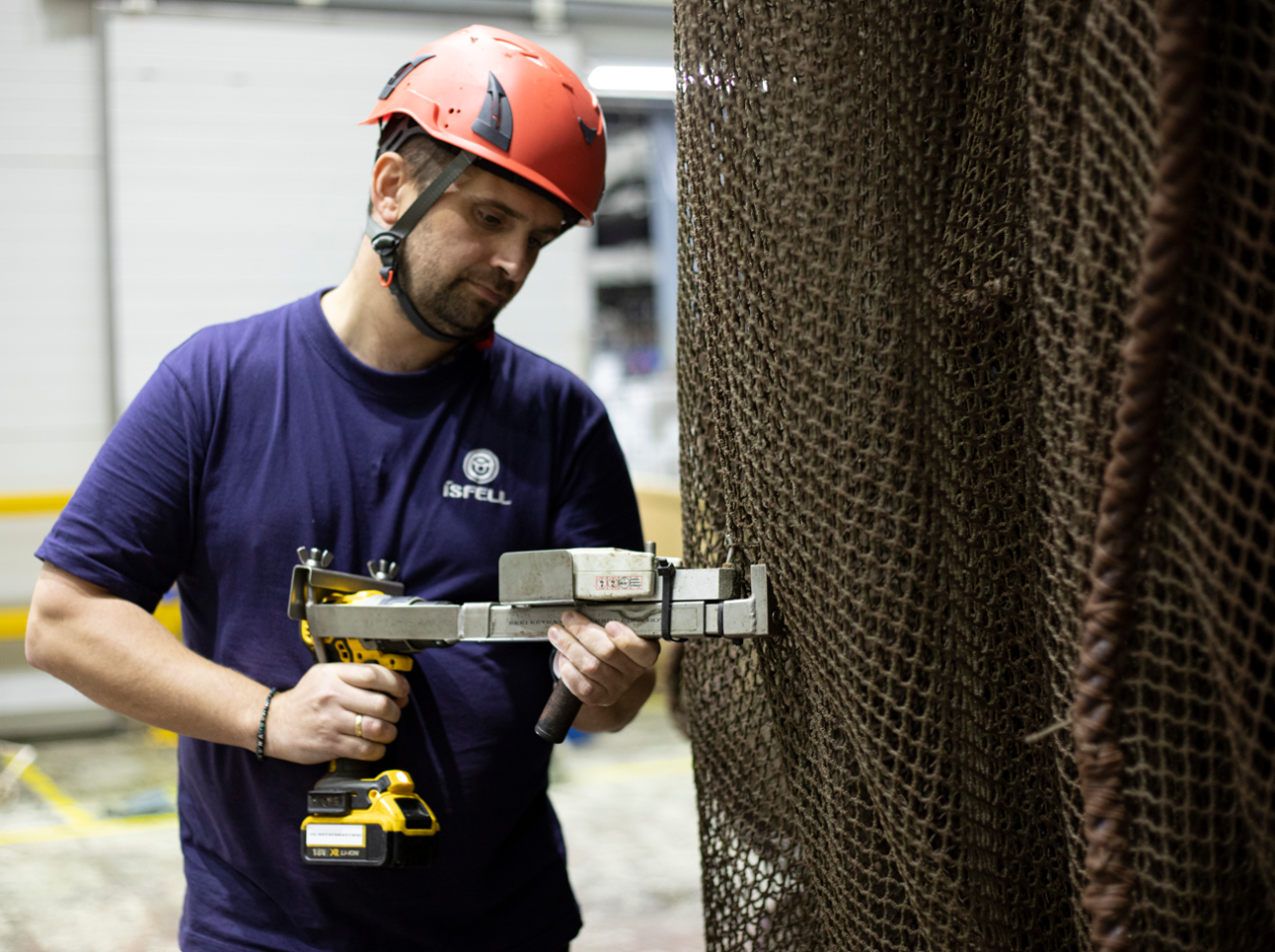 Árið 2019 reisti Ísfell eina fullkomnustu þjónustustöð fyrir þvott og yfirferð á fiskeldispokum við höfuðstöðvar sínar. Þjónustustöðin uppfyllir kröfur fyrir fiskeldi NS9415. Starfsemin er úttekin og vottuð af DNV-GL. Þar tekur fyrirtækið við fiskeldispokum þegar þeir eru búnir að vera í sjó og notkun lokið. Eftir þvott og sótthreinsun eru pokar og íhlutir þess skoðaðir gaumgæfilega, slitpróf framkvæmd og pokarnir viðgerðir ef þörf þykir. Möguleiki er á böðun með sæfivörnum til að verja net og lengja líftíma. Að lokum er pokinn pakkaður og ástandsmat útgefið fyrir afhendingu eða pokinn settur í geymslu fyrir áframhaldandi notkun. Í fiskeldi er afar mikilvægt að halda netunum í kvíunum hreinum, þannig að slý og annar sjávargróður safnist ekki upp og skerði ekki flæði súrefnis.