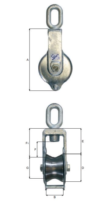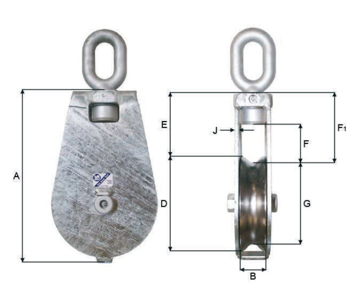 | Product number | Type | WLL (5:1) tonn | A mm | B mm | C mm | D mm | F mm | F1 mm | G mm | J mm | Maximum dimension wire (mm) | Weight kg |