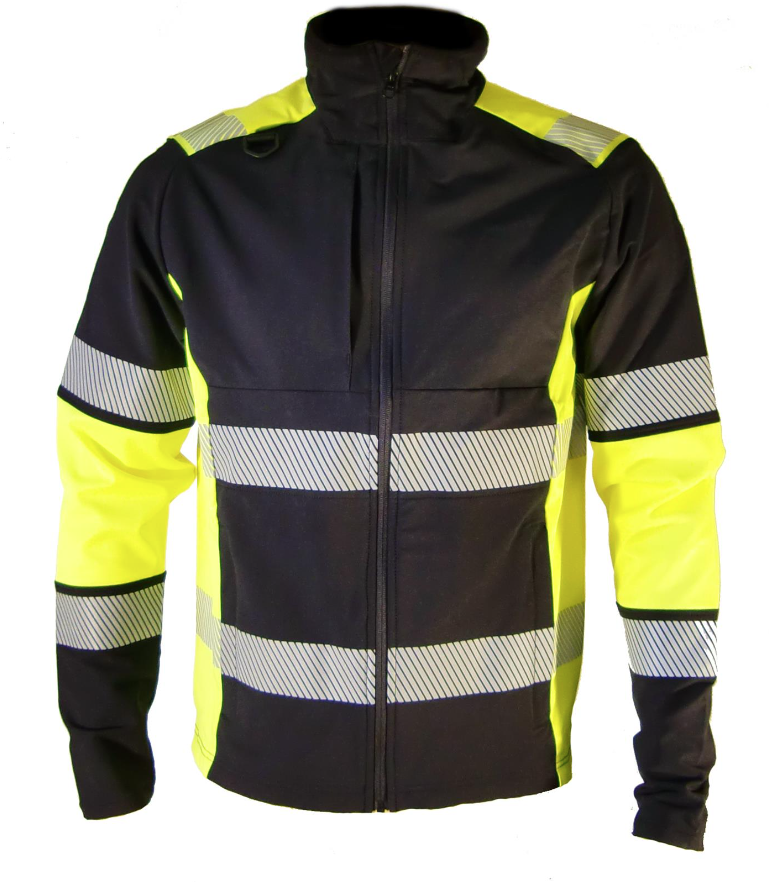 Softshell jacket made from lightweight, durable stretch fabric, with reflective details.