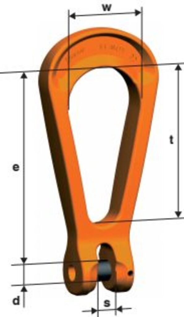 | Product number | Type | WLL kg (4:1) | e mm | t mm | w mm | d mm | s mm | Weight kg |