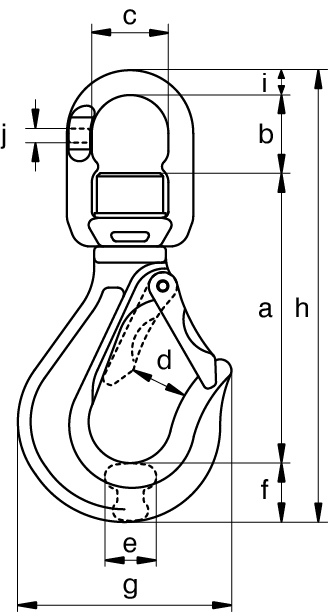 | Product number | For chain ø mm | WLL kg (4:1) | a mm | b mm | c mm | d mm | e mm | f mm | g mm | h mm | i mm | j mm | Weight kg |