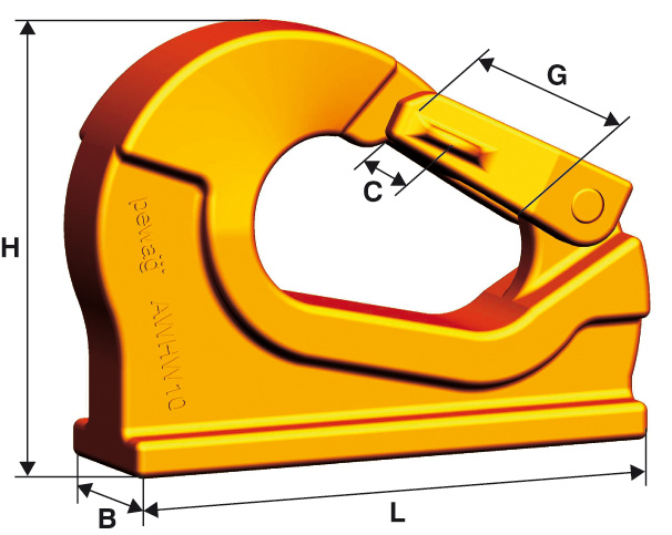 | Product number | Type | WLL kg (4:1) | L mm | H mm | G mm | B mm | C mm | Weight kg |