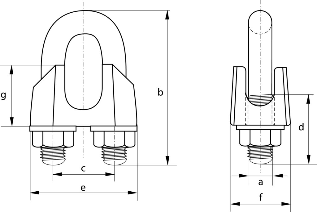 | Product number | Diameter wire rope ø mm | a mm | b mm | c mm | d mm | e mm | f mm | g mm |