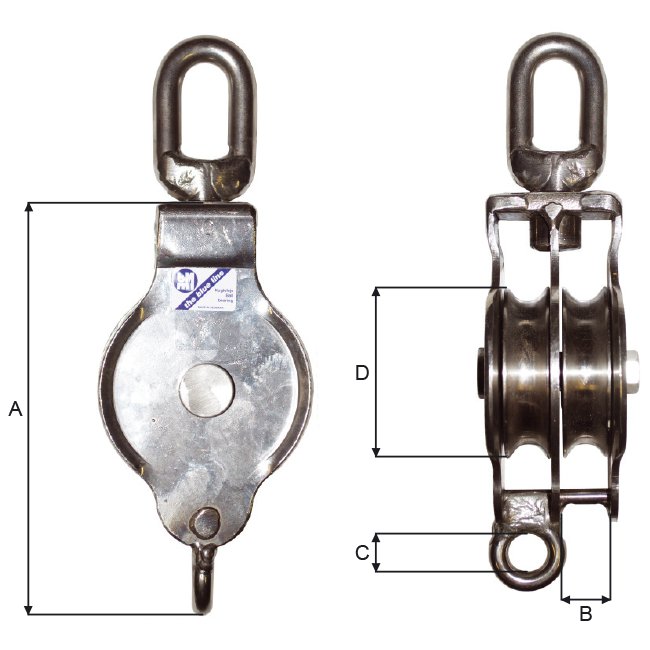 | Vörunúmer | Tegund | Gerð | LVÁ (5:1) tonn | A mm | B mm | C mm | D mm | þvermál vírs max mm | Þyngd kg |