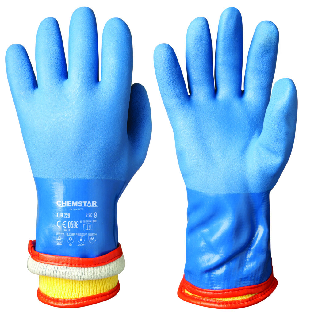 PVC/Vinil, akrýl undirhanski. Undirhanska er hægt að fjarlægja og þvo. Vel einangraðir gegn kulda og haldast mjúkir í -20 gráðu frosti. Kjörinn í sjómennsku og kalda geymslu.
