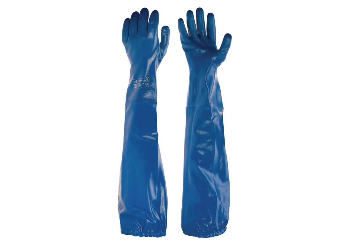 Gúmmívettlingar – BLUE – Nitril með ermahlífum – fóðraðir