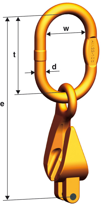 | Vörunúmer | Tegund | LVÁ kg (4:1) | Fyrir keðju ø | e mm | d mm | t mm | w mm | þyngd kg |