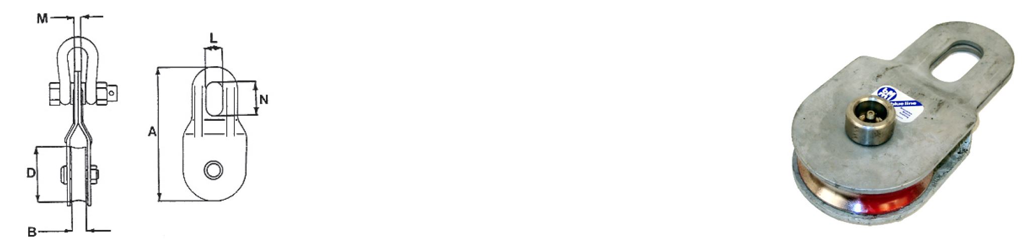 | Vörunúmer | LVÁ (5:1) tonn | A mm | B mm | D mm | M mm | L mm | N mm | Hámarks Þvermáls vírs (mm) | Þyngd kg |