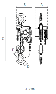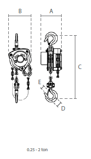 | Vörunúmer | Tegund | LVÁ tonn og lengd keðju | A mm | B mm | C mm | D mm | E mm | Þyngd (Kg) |