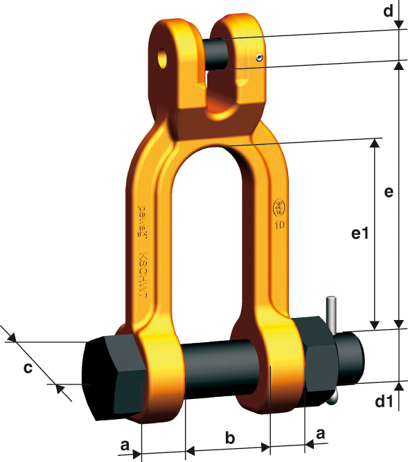 | Vörunúmer | Gerð | LVÁ kg (4:1) | e mm | e1 mm | b min mm | a mm | d mm | c mm | d1 mm | Þyngd kg |