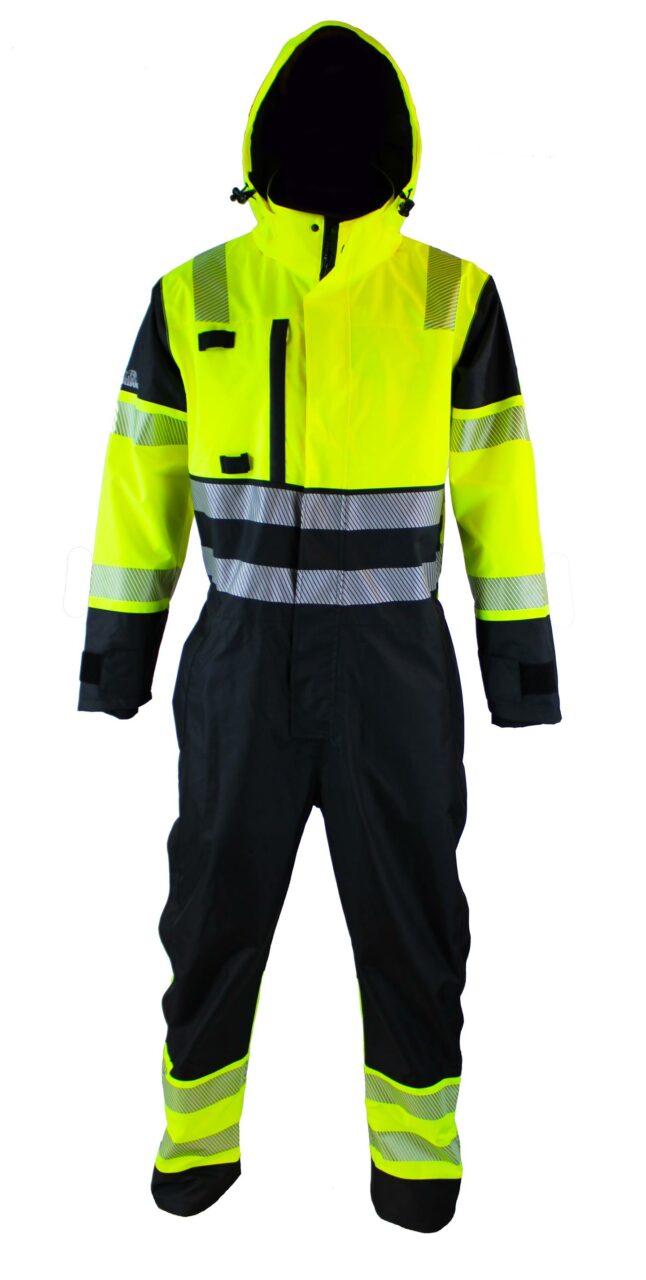 Kuldagalli SKJOLD í sýnileika ISO20471 úr vatnsheldu mjúku 300D polyester teygjuefni og PU lagskiptu öndunarefni.