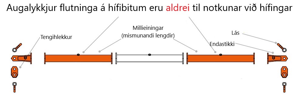 Hægt að setja að hámarki 5 millieiningar í hverja hífibitaeiningu upp að 170 tonnum og 6 millieiningar frá 250 tonnum og upp úr.
