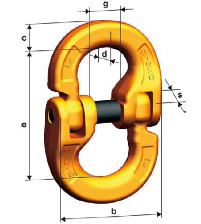 | Vörunúmer | Tegund | Brotþol tonn | Keðja mm | e | c | s | d | b | g | Þyngd |