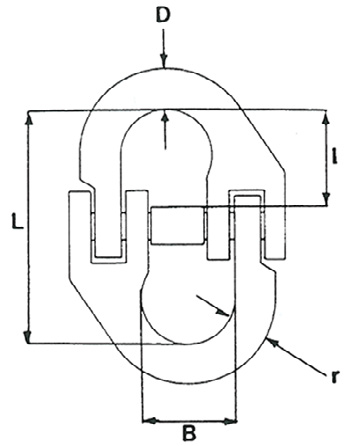 | Vörunúmer | Tegund | LVÁ (4:1) tonn | Brotþol | Keðja mm | L mm | B mm | D mm | I mm | Þyngd kg |