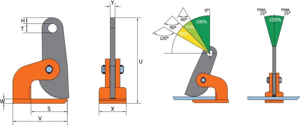 | Vörunúmer | Tegund | LVÁ (5:1) Parið kg | Opning R mm | V mm | S mm | W mm | T mm | H mm | X mm | U mm | Y mm | Þyngd kg /stk |