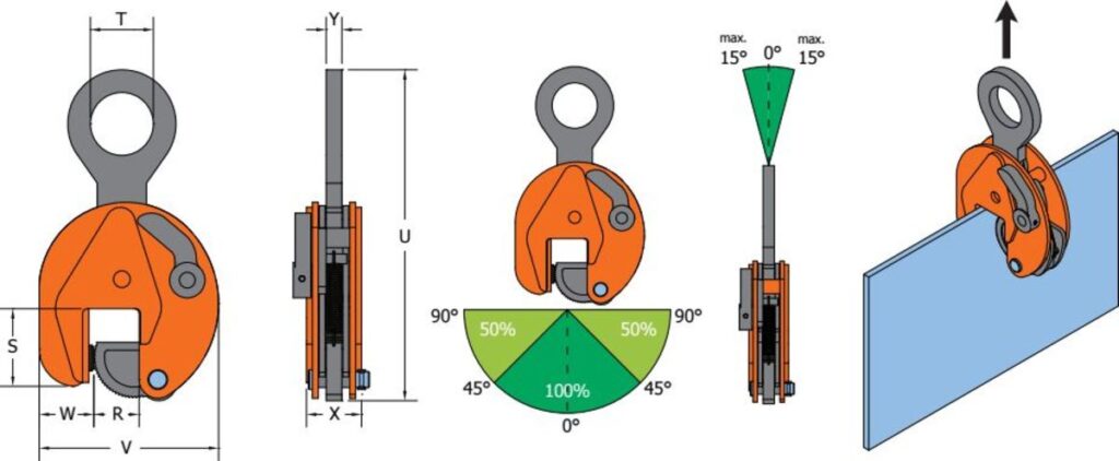 | Vörunúmer | Tegund | LVÁ (5:1) Parið kg | Opning R mm | S mm | T mm | U mm | V mm | W mm | X mm | Y mm | Þyngd kg /stk |
