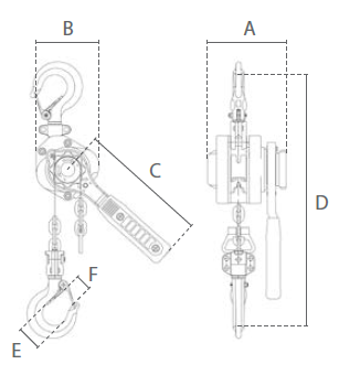 | Vörunúmer | Tegund | LVÁ tonn og lengd keðju | A | B | C | D | E | F | Þyngd (Kg) |