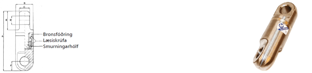 | Vörunúmer | Tegund | LVÁ (5:1) tonn | A mm | B mm | C mm | D mm | E mm | F mm | Þyngd kg |