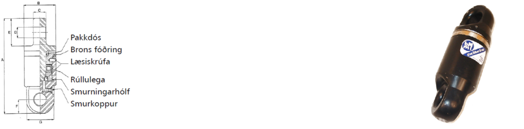 | Vörunúmer | Tegund | LVÁ (5:1) tonn | A mm | B mm | C mm | D mm | E mm | F mm | G mm | Þyngd kg |