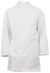 Klopman polyester/bómull. Bundinn sloppur með kraga fyrir matvælaiðnaðinn. Vasalaus að utan. Innanávasi með riflás.