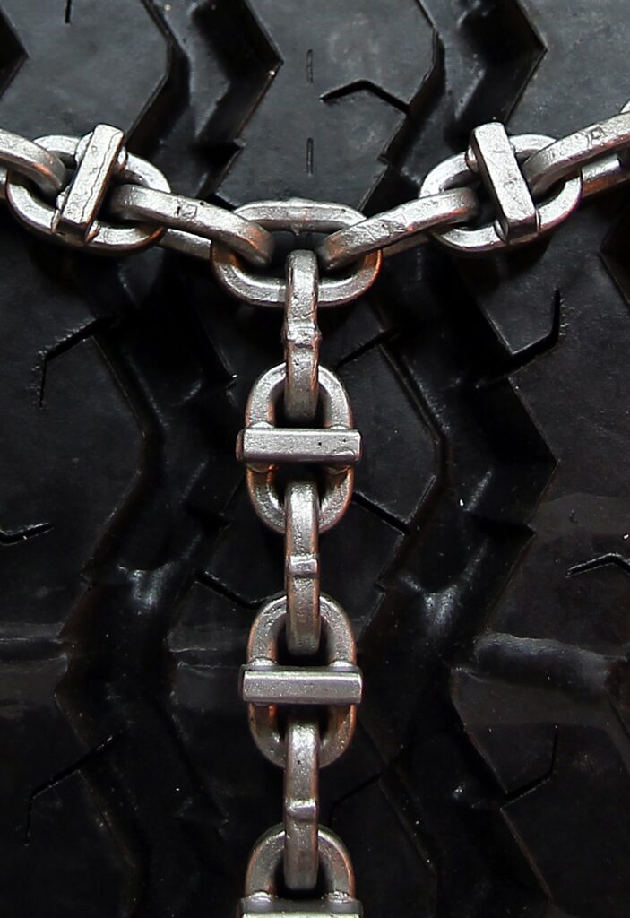 Snjókeðjur undir flutningabíla