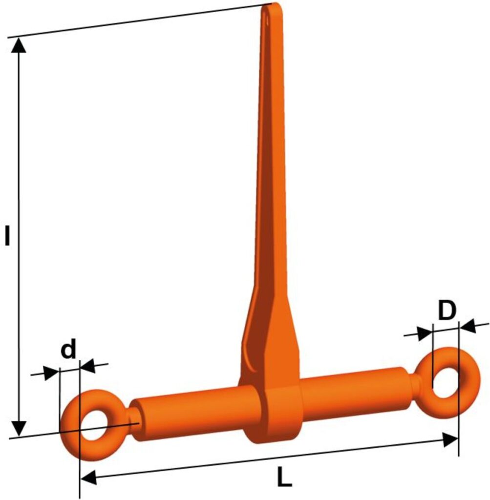 | Vörunúmer | Gerð | Átak LC kN | Strekkigeta STF daN | L Min (gengjur inni) mm | L Max (gengjur úti) mm | Max strekking mm | I mm | D mm | d mm | Þyngd kg/stk |
