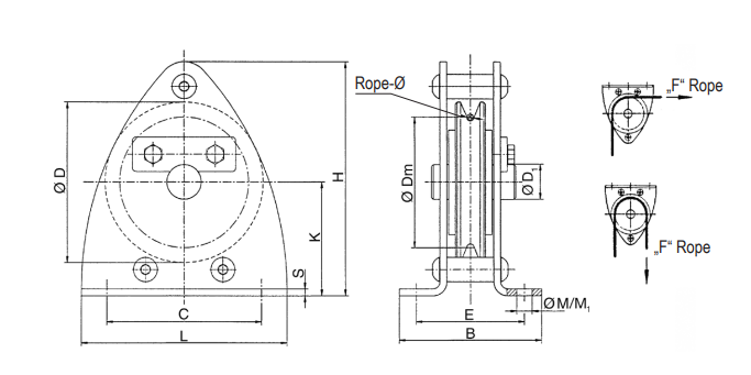 | 38455 | Trissuhjól m/legu, f/7 mm vír (fyrir vindur) | DSRB S 145/7 | 1.100 kg | 800 kg | 6 / 7 mm | 125 | 160 | 145 | 25 | 126 | 88 | 224 | 110 | 200 | 11.5/13 | 6 |
